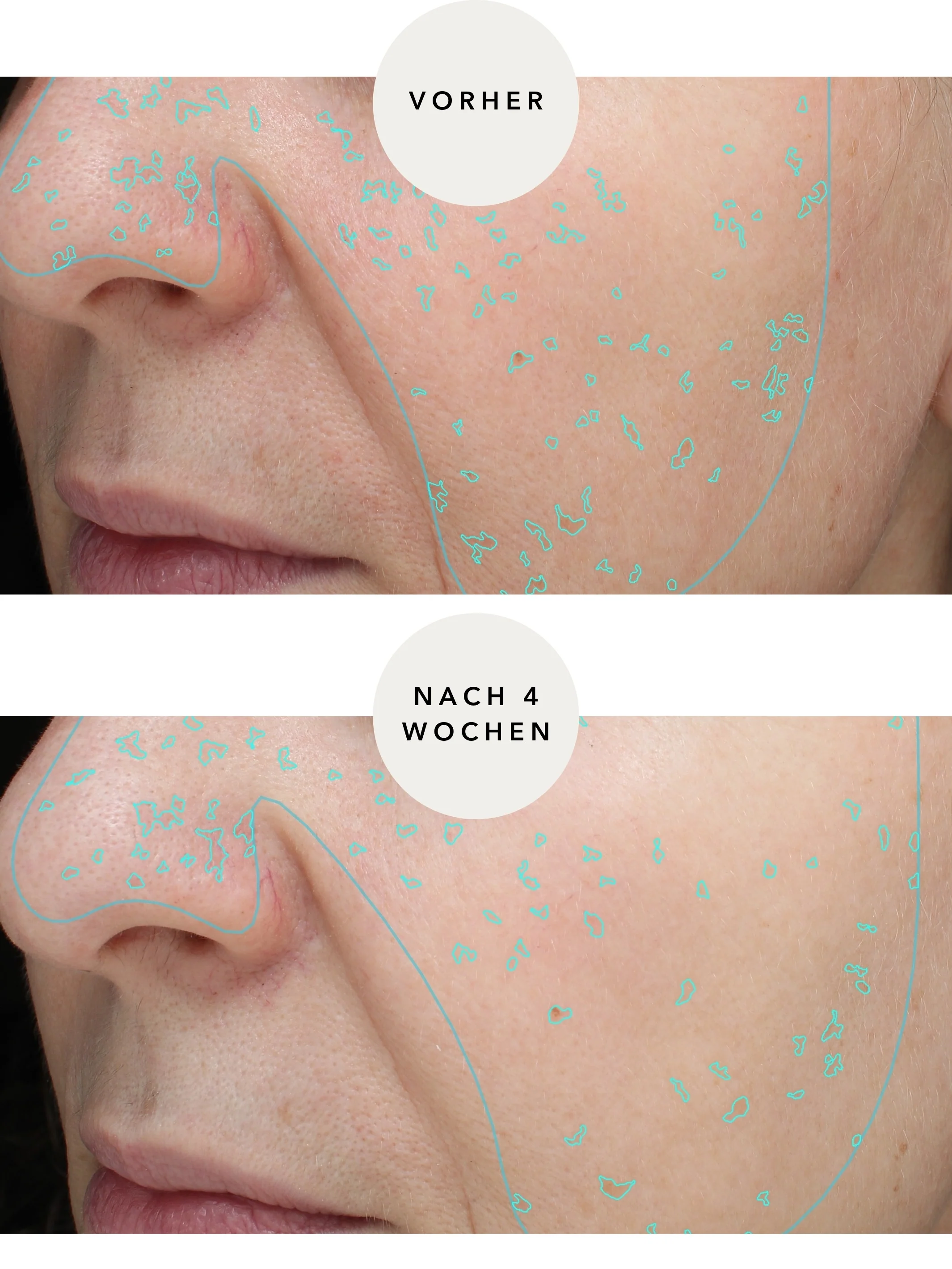 Morgens und abends 2-3 Tropfen des Serums gezielt auf Hautstellen mit Pigmentflecken, wie z.B. im Gesicht, auf den Händen oder am Dekolleté, auftragen. Das Serum sanft einmassieren, bis es vollständig eingezogen ist. Einige Minuten einwirken lassen und anschließend eine passende Tages- oder Nachtpflege auftragen. Um die Haut vor UV-Schäden zu schützen und ein optimales Ergebnis zu erzielen, tagsüber zusätzlich einen Sonnenschutz verwenden.